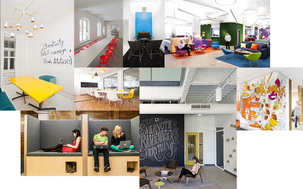 The design direction for the space focused on a friendly yet modern environment where collaboration can happen anywhere. Splashes of brand colors add vibrancy to the crisp design, with graphic decals highlighting critical figures in computer science history and introducing the past, present, and future.
